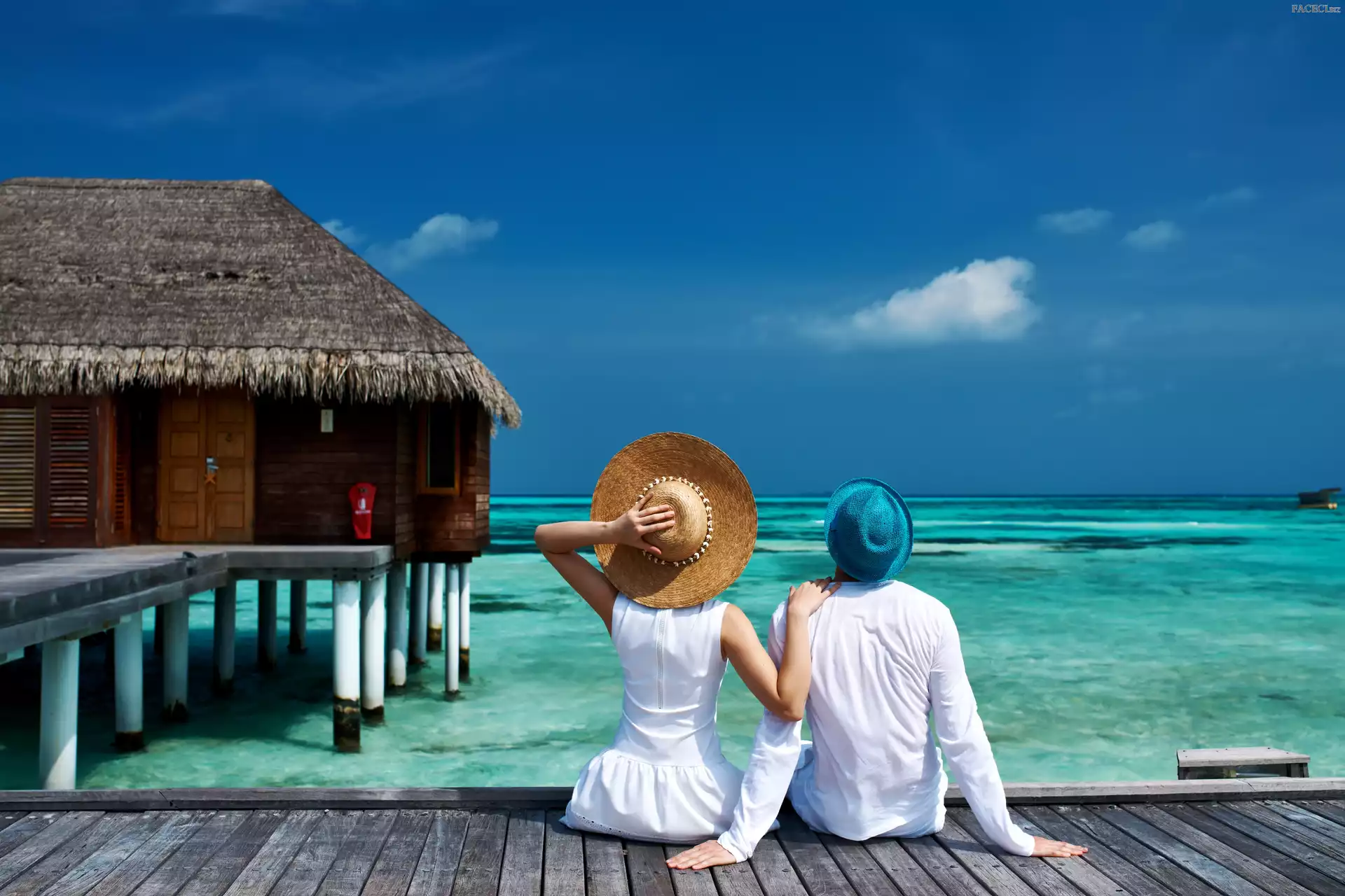 Kapelusze, Hotel, Wakacje, Morze, Urlopowicze, Lato, Molo